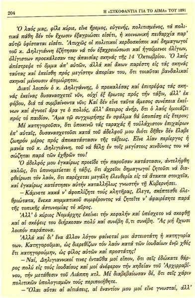 ‘‘ Η είδηση ότι ο Βασιλιάς Γεώργιος επισκέφτηκε το νησί, για να ξεκουραστεί για μερικές βδομάδες και, για να ηρεμήσει τους χριστιανούς ταραξίες, μπορεί μόνο να αναλυθεί σαν μια ακόμη απόδειξη, πως οι εβραίοι δεν ήταν σε θέση να παράγουν κανένα ελαφρυντικό στοιχείο σχετικά με την δολοφονία, για την οποία κατηγορούνται. Αλλά, μιας και όλες οι αποδείξεις είναι εναντίον των εβραίων, μια ετυμηγορία αθώωσης είναι αδιανόητη. Το μόνο που τους έχει απομείνει είναι να εμποδίσουν τις διαδικασίες να ολοκληρωθούν με το σωστό τρόπο. Και αυτό ακριβώς επιθυμεί και το κράτος, δηλαδή να κατευνάσουν τα πνεύματα. Η επίσκεψη του Βασιλιά σε αυτό ακριβώς στοχεύει.’’
