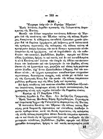 Διοικητικά έγγραφα υπέρ των Κερκυραίων Εβραίων