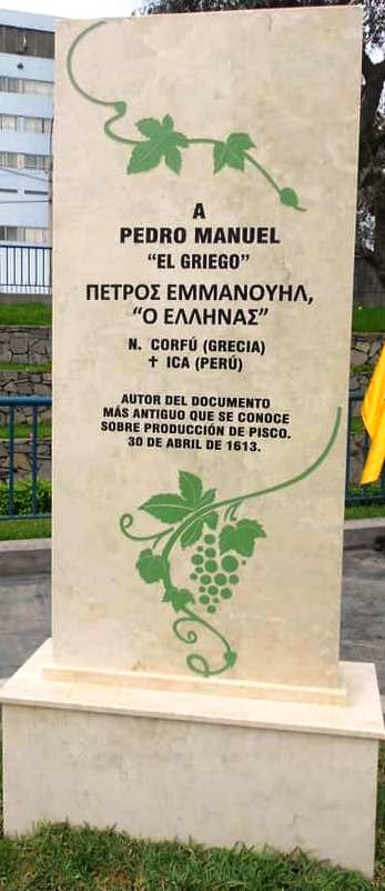 Το μεγάλο πρόβλημα είναι η αιώνια διαμάχη με τη Χιλή για την «πατρότητα» του ονόματος. Οι Χιλιανοί παρήγαν το απόσταγμα στο βορρά και θεωρούσαν ότι το brand name τους ανήκε. Τη λύση έμελλε να δώσει η διαθήκη ενός Ελληνα εμπόρου από την Κέρκυρα! Στις 30 Απριλίου 1613, ο Pedro Manuel «el Griego» κληροδοτούσε εγγράφως στους συγγενείς του τριάντα αμφορείς με pisco και έναν χάλκινο αποστακτήρα. Είναι η παλαιότερη γραπτή αναφορά σε παραγωγή του αποστάγματος στη χώρα και με αυτό το νομικό όπλο το Περού το κατοχύρωσε ως εθνικό του προϊόν αν και ο Pedro Manuel δήλωνε πάντα Έλληνας.